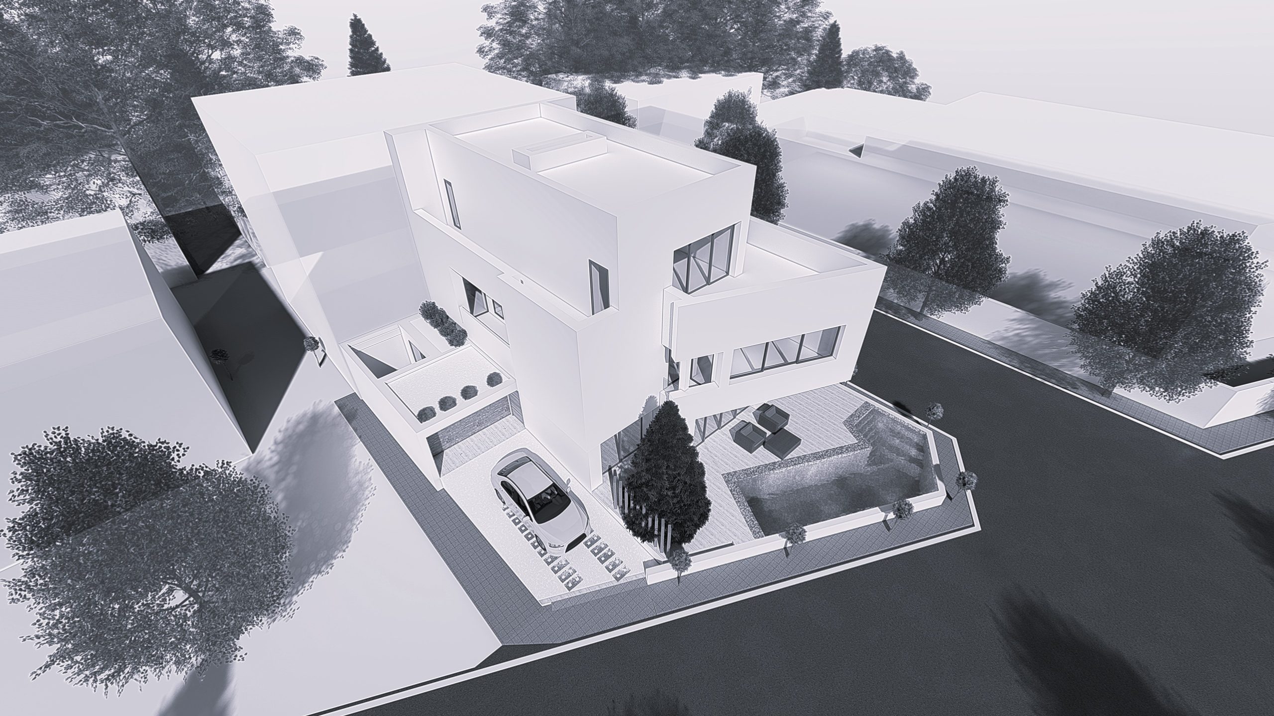 Construction d’une villa jumelée moderne en R+2 sur un terrain de forme trapézoïdale